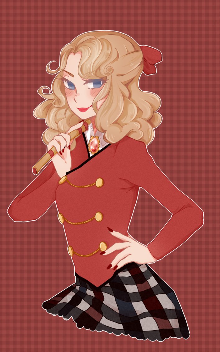 Wesoła, energiczna, towarzyska i przede wszystkim - opiekuńcza. Zawsze troszczy się o innych. Feministka, ale nie radykalna, wegetarianka i hipsterka.//Może być? ^^